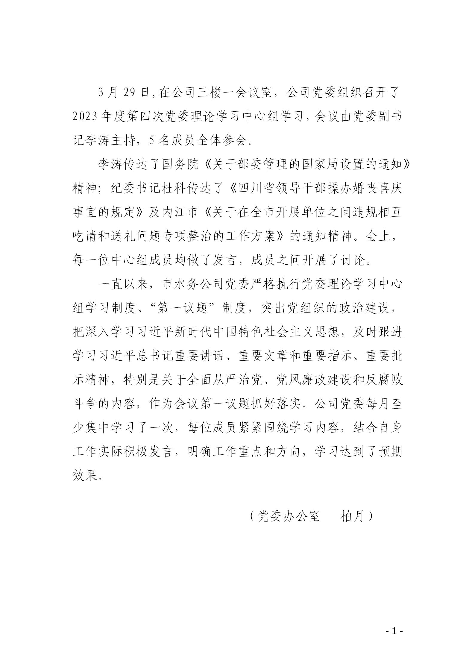 公司黨委嚴格執(zhí)行黨委理論學習中心組學習制度、“第一議題”制度