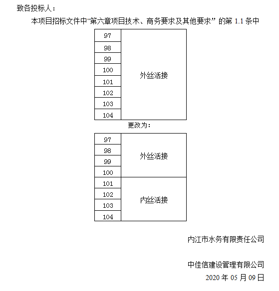 內(nèi)江市水務(wù)有限責(zé)任公司PPR給水管及管件采購(gòu)項(xiàng)目更正公告