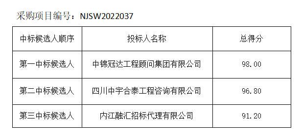 內(nèi)江市水務(wù)有限責(zé)任公司招標(biāo)代理機(jī)構(gòu)服務(wù)供應(yīng)商采購(gòu)項(xiàng)目評(píng)標(biāo)結(jié)果公示