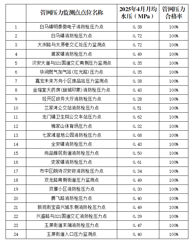 內(nèi)江市水務有限責任公司2025年4月管網(wǎng)壓力月報