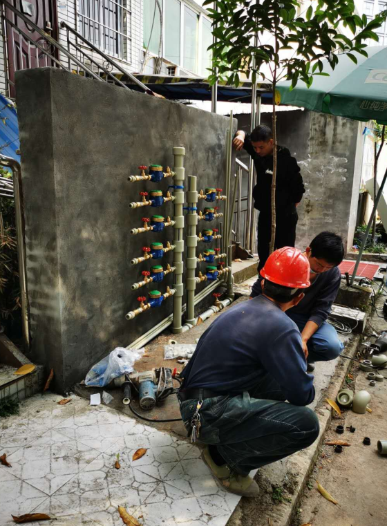 在做好安全防護準(zhǔn)備后,歷經(jīng)4天的清淤轉(zhuǎn)移,2天的鉆孔開窗、管溝開挖、新表墻砌筑,2天的集中攻關(guān)改管后,將原有表位廢除遷改,在4月30日完成整改工作,確保了“五一”期間經(jīng)營戶的正常營業(yè)用水。