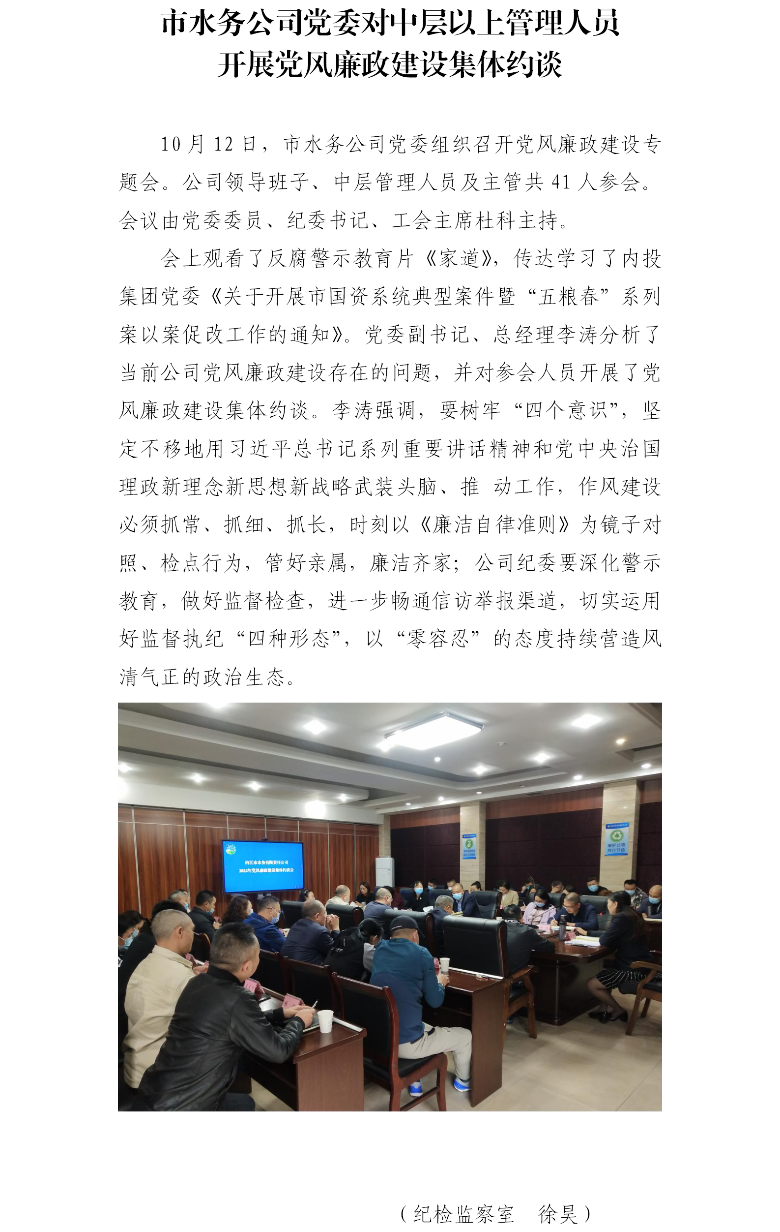 市水務(wù)公司黨委對(duì)中層以上管理人員開(kāi)展黨風(fēng)廉政建設(shè)集體約談