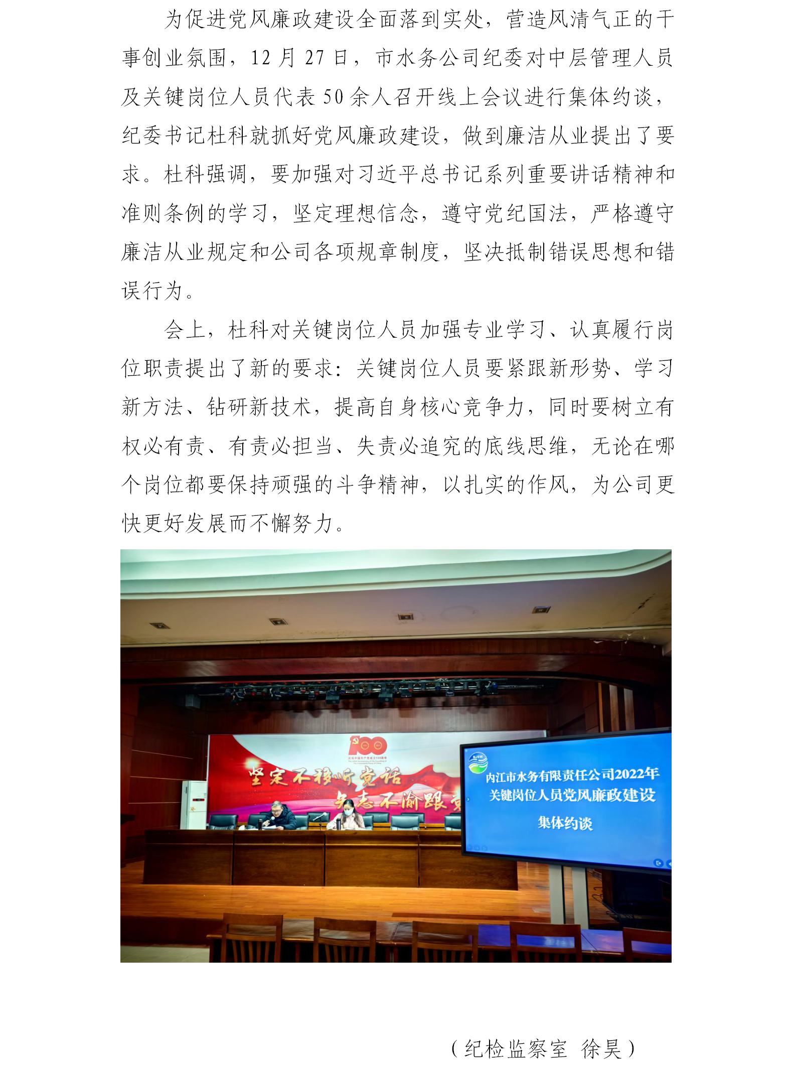市水務(wù)公司紀(jì)委對(duì)關(guān)鍵崗位人員進(jìn)行集體約談