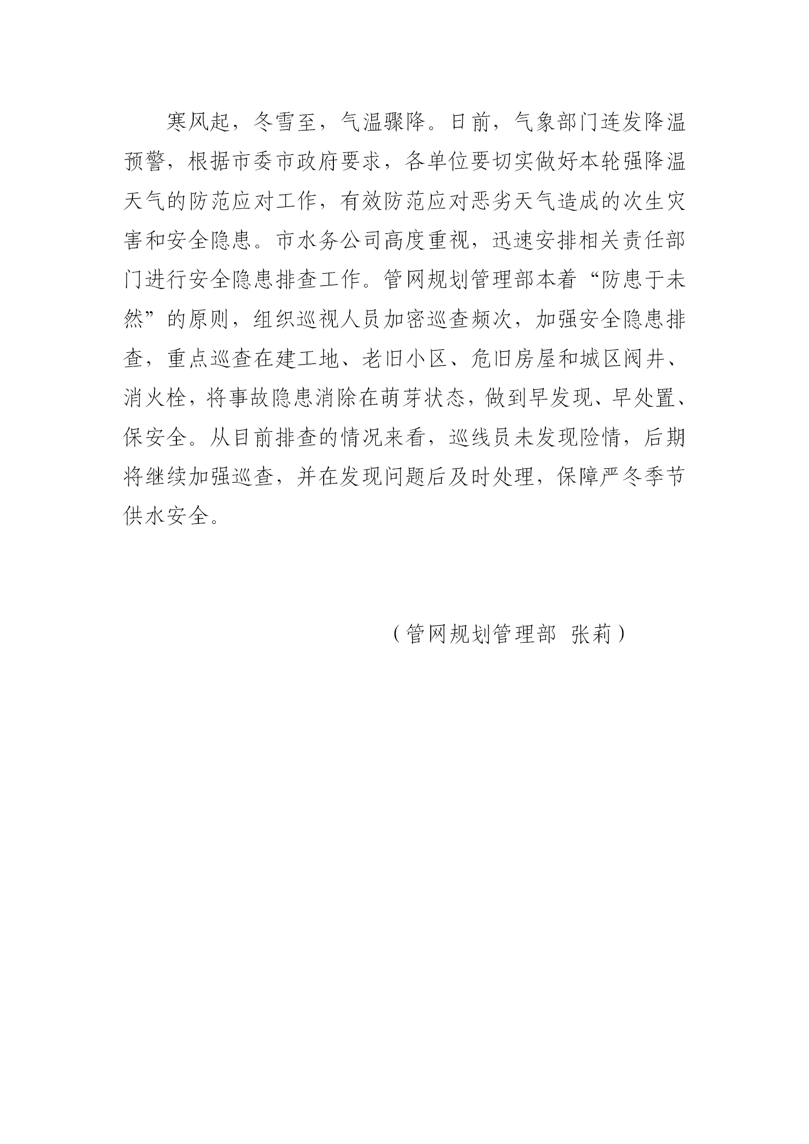 寒潮來臨 保供水安全