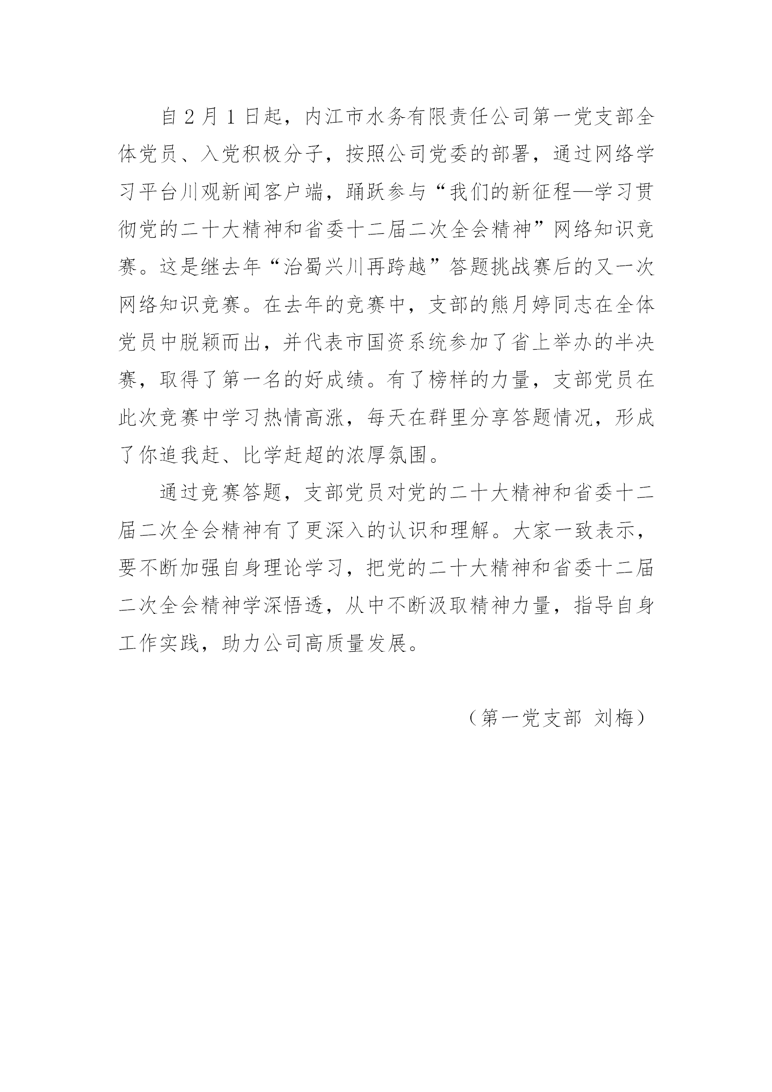 第一黨支部積極參與“學(xué)習(xí)貫徹黨的二十大精神暨省委十二屆二次全會精神”網(wǎng)絡(luò)知識競賽
