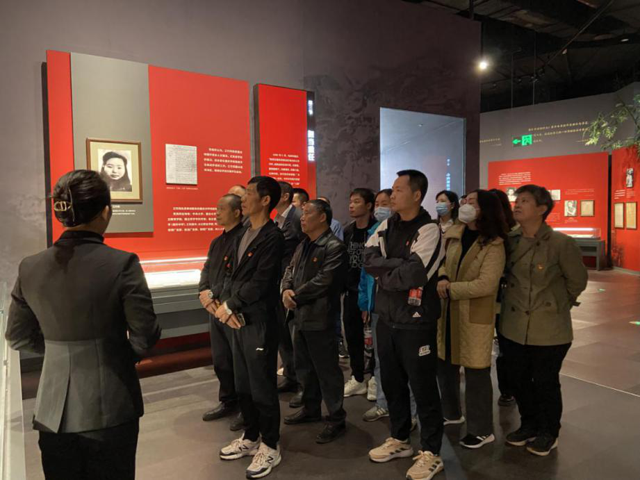 在江姐故居,全體黨員懷著崇敬的心情走進(jìn)江姐生平陳列館,認(rèn)真聆聽江竹筠烈士的成長歷程、所經(jīng)歷的革命斗爭以及在獄中的英雄事跡。一件件歷史實(shí)物和一段段圖文解說,生動(dòng)再現(xiàn)江姐的英勇品格,黨員們深受觸動(dòng),被江姐堅(jiān)如鋼鐵的意志和寧死不屈的精神、永不叛黨的政治品格深深感動(dòng)。