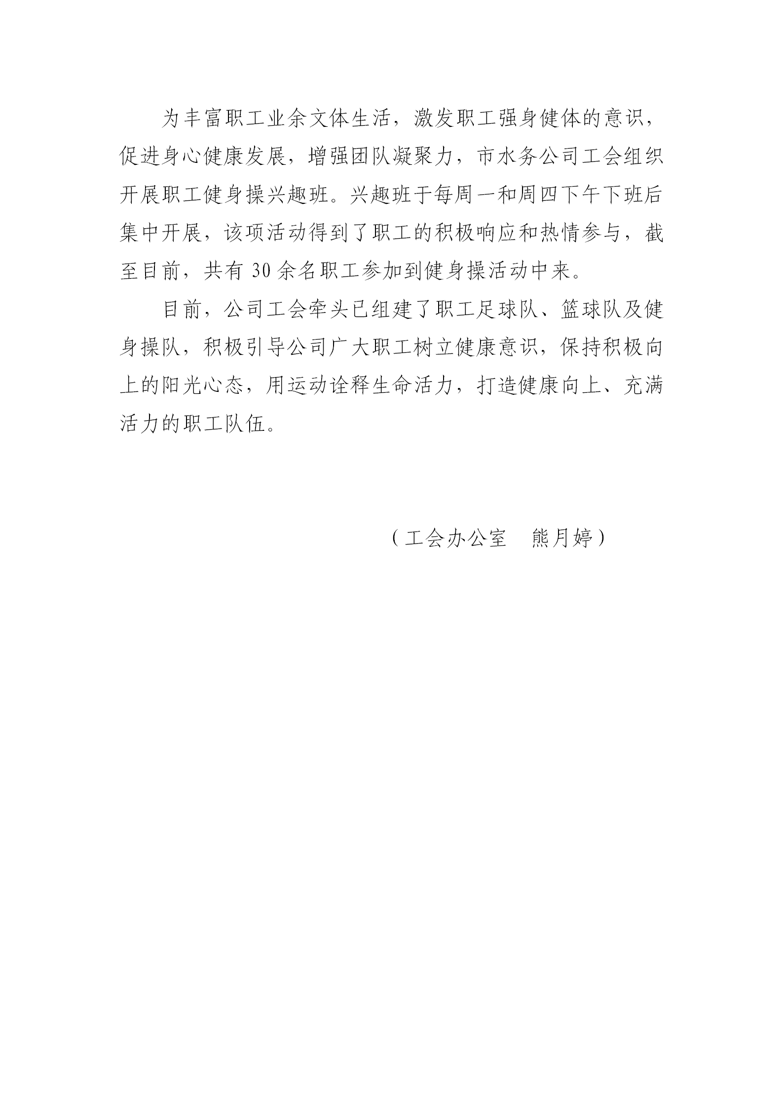 水務(wù)公司工會(huì)組織開(kāi)展職工健身操興趣班