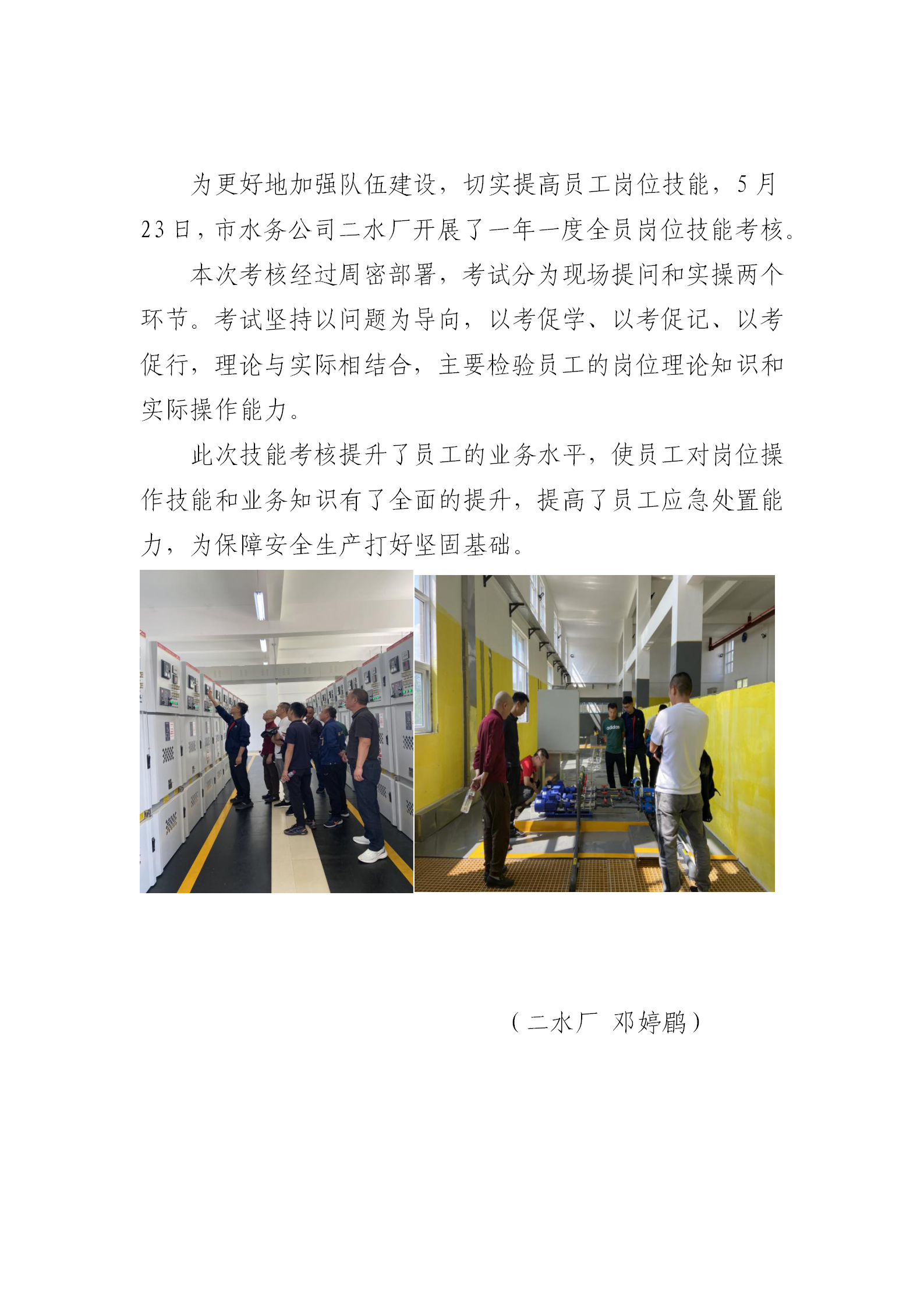 二水廠開展年度全員崗位技能考核