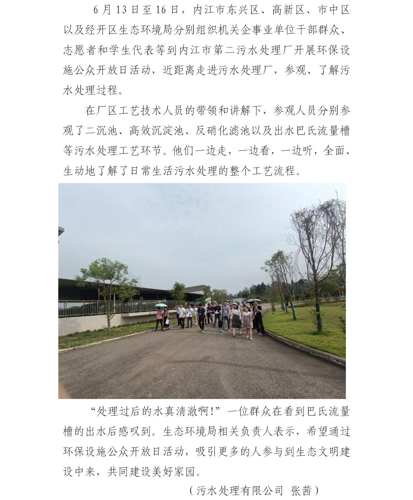 內(nèi)江市多區(qū)生態(tài)環(huán)境局組織到第二污水處理廠開展環(huán)保設(shè)施公眾開放日活動(dòng)