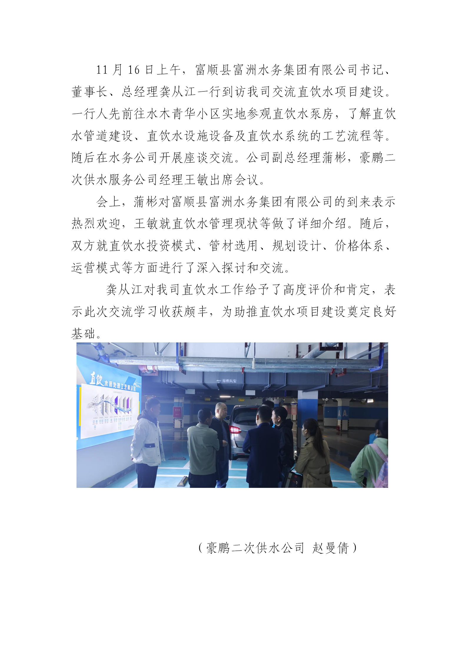 富順縣富洲水務(wù)集團(tuán)有限公司到我司開展直飲水項(xiàng)目建設(shè)交流