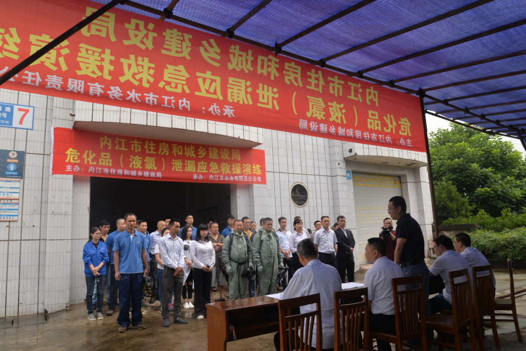 2017年6月16日上午,為做好?;钒踩芾砉ぷ鳎0踩┧?/span>,公司在二水廠成功進行液氯泄漏應(yīng)急救援演練。本次演練,由市住建局主辦、公司承辦,公司黨委書記、董事長、總經(jīng)理寧印福任總指揮,總工程師蒲彬任現(xiàn)場總指揮,生產(chǎn)技術(shù)部組織,二水廠具體實施,共計 50多人參與演練。
