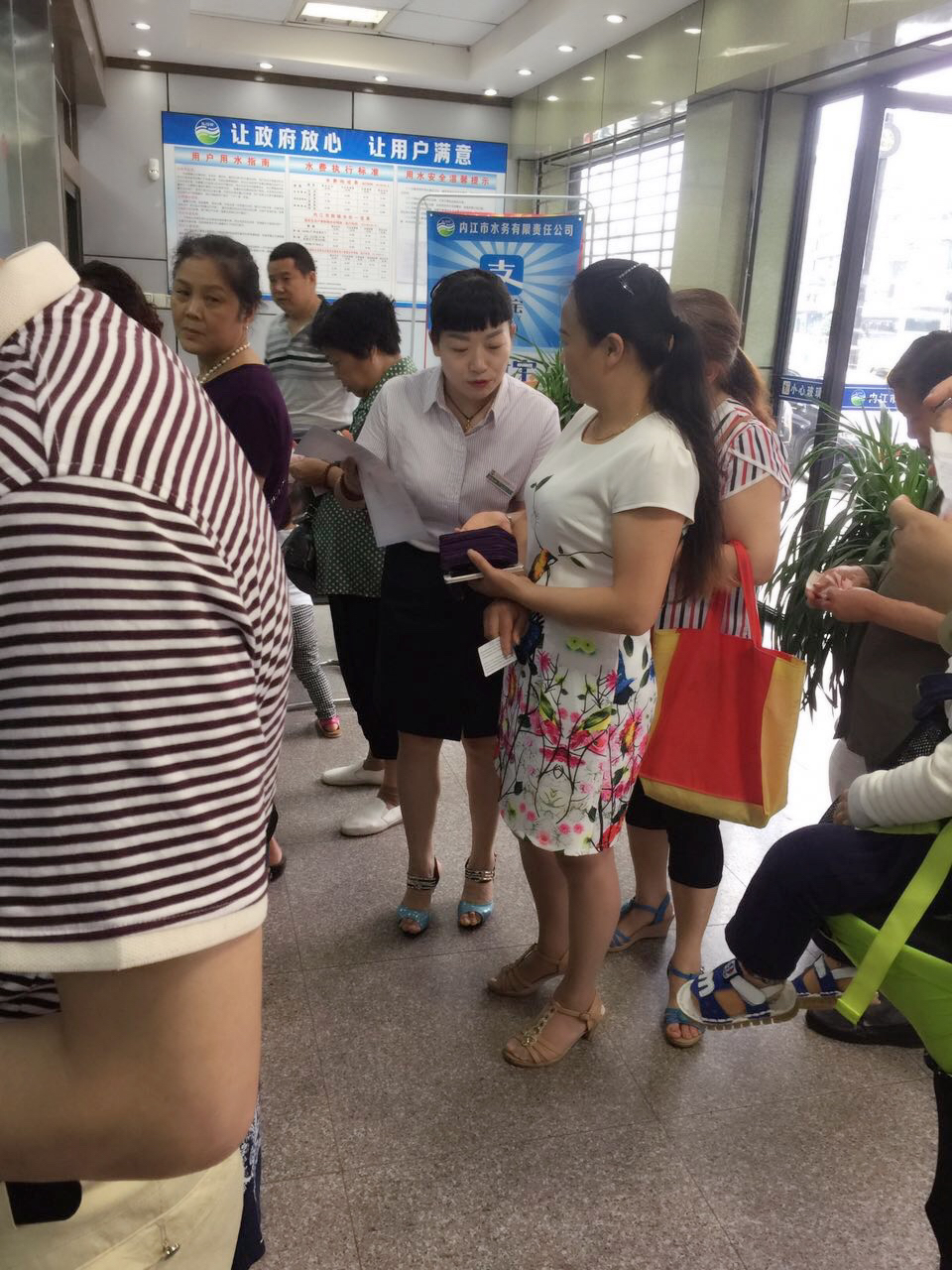 為宣傳推廣公司代收水費(fèi)業(yè)務(wù),公司客戶服務(wù)部組織賬務(wù)組的工作人員在收費(fèi)高峰期到每個收費(fèi)室進(jìn)行代收費(fèi)業(yè)務(wù)的宣傳。工作人員手拿宣傳單走進(jìn)繳費(fèi)人群中,熱情仔細(xì)給用戶講解水費(fèi)代收費(fèi)業(yè)務(wù),并用手機(jī)手把手教用戶怎么使用翼支付和支付寶手機(jī)繳費(fèi)。通過幫助用戶學(xué)習(xí)掌握手機(jī)繳費(fèi),免去用戶在酷暑和寒冬排隊繳費(fèi)的煩勞。
