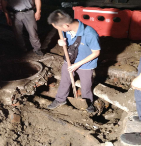 2017年6月8日晚,管網(wǎng)運行部接到群眾電話,反映工商街大面積停水。經(jīng)搶維修人員到現(xiàn)場排查,發(fā)現(xiàn)供水管道井內DN200鑄鐵管被污水嚴重銹蝕,導致供水主管破裂,造成了工商街沿線大面積停水。由于天氣悶熱,加上工商街又是商鋪和居民密集地,管網(wǎng)運行部決定冒雨連夜搶修,同時派送水車給附近居民送水。經(jīng)過7個多小時連續(xù)作業(yè),在6月9日凌晨1:30分完成搶修,凌晨6:30分恢復供水,保證了周邊用戶正常用水。