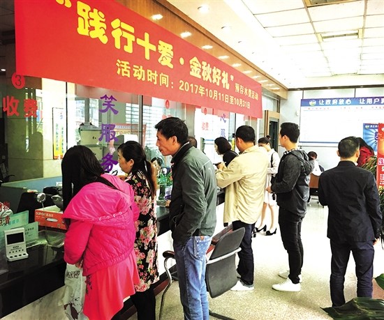 乘“踐行十愛·德耀甜城”春風,秉承“做好供水服務、提高服務品質”之傳統(tǒng),今年來,內江市水務有限責任公司(以下簡稱“水司”)推出了一系列“惠民、便民”服務,希冀將溫暖傳遞到家家戶戶…… 金秋十月,惠民萬家 “請幫我預存800元……”“我要領口炒鍋……”10月11日上午9時許,“水司”玉溪路收費廳里人潮涌動、熱鬧非凡。 窗口前,預存水費的用戶群整齊劃一地排著長隊;登記處,工作人員井然有序地發(fā)放禮品、征集“作風效能建設征求意見表”;庫房內,餐洗液、食用油、炒鍋等禮品完好裝箱存放,正“翹首以盼”地等待用戶前來認領。 “惠”聚金秋,樂享好禮。據(jù)玉溪路收費廳組長周麗萍介紹,為感謝廣大用戶對城市供排水事業(yè)的長期支持及幫助,“水司”特精心策劃、推出了為期21天的“金秋好禮”預存水費活動。即日起至10月31日,凡屬“水司”供水區(qū)域內的生活用水戶(一表一戶),結清欠費后預存相應數(shù)額的水費,憑預存收據(jù),便可現(xiàn)場領取相應的禮品回饋。 禮品為:預存200元,贈送雕牌餐洗一桶或其他;預存400元,贈送斑布生態(tài)竹紙一提或其他;預存600元,贈送金龍魚葵花籽油(4L)一桶或其他;預存800元以上,贈送蘇泊爾燉鍋一口或蘇泊爾炒鍋一口。 活動一經(jīng)啟動,便獲得廣大用戶的熱烈反響?!敖裉焐衔?,前來預存水費、領取禮品的用戶絡繹不絕。”周麗萍說,截止到當天10點半,僅玉溪路收費廳參與活動的用戶就突破了130人;而平安路、大千路、交通路、白馬鎮(zhèn)四處同步推行活動的收費廳,累計登記430余名參與用戶。 “前兩天,小區(qū)里都在沸沸揚揚地傳‘水司’將舉辦回饋活動?!奔易∈兄袇^(qū)甜城大道某小區(qū)的用戶張光華,今天特意抽空前來預存了800元水費,并領取了一口炒鍋?!袄U水費還能領禮品,這樣的好事我一定會在朋友圈大力宣傳,爭取讓身邊更多人知曉。” 左手一口燉鍋、右手一口炒鍋。預存1600元,抱得禮物歸,家住市中區(qū)臨江路某小區(qū)的用戶宋浩笑容滿面:“對于用水戶來說,這活動真的‘接地氣’。”他希望,今后,“水司”能將類似的惠民傳統(tǒng)長久地延續(xù)下來。 繳納水費 不跑“冤枉路” “今后您隨時隨地,只要用手機就可以繳費了……” 近日,家住市中區(qū)臨江路528號的黃女士,一如既往地來到“水司”玉溪路收費廳。當她在排隊繳納水費時,“意外”地受到“水司”客戶服務部副經(jīng)理樊曉麗的熱情接待。 原來,“水司”已與中國建設銀行網(wǎng)站(手機銀行)、中國農業(yè)銀行網(wǎng)站(手機銀行)、中國工商銀行網(wǎng)站(手機銀行)、四川省農村信用社網(wǎng)站(手機銀行)取得了合作,用戶登錄以上銀行網(wǎng)站個人銀行(之一),進入水費繳費界面便可繳納水費。 此外,“水司”還相繼開通了“中國電信翼APP”、“支付寶APP”繳費方式,用戶登陸上述APP(之一),在首頁點擊進入生活繳費界面,也可繳納水費。 經(jīng)過樊曉麗一番詳細講解、實際操作,不到20分鐘,黃女士便熟練地掌握了手機繳費的“技能”?!拔椰F(xiàn)在50多歲了,每次繳費跑來跑去,怪累人的?!彼呛堑卣f,“這下好了,今后再也不用跑‘冤枉路’了,這樣的服務太貼心了!” “手機繳費的服務,已開通了一段時間了?!薄八尽笨蛻舴詹控撠熑俗蠛O几嬖V記者,像這種“新”服務,年輕人接受起來非????!暗心耆丝赡芫筒荒敲础曇詾槌!恕!?/span> 為將這項便捷、優(yōu)質、高效的服務推送到各類人群,滿足廣大用戶對方便用水的需求,自5月中旬以來,“水司”便挑選了樊曉麗等8名優(yōu)秀服務員工,在每天繳費的高峰期,分別派駐到東興區(qū)平安路收費廳、大千路收費廳以及市中區(qū)玉溪路收費廳、交通路收費廳,開展“代收水費業(yè)務”專項宣傳活動。 “截至目前,活動的服務人群已達2000余人?!弊蠛O颊f,宣傳活動將作為公司常態(tài)化工作,一直持續(xù)到今年年底。