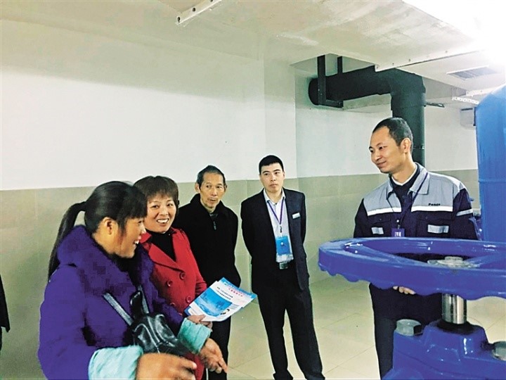 當(dāng)天上午9時許,隨著10余名業(yè)主代表準(zhǔn)時出現(xiàn)在萬晟城峰景小區(qū)二次供水泵房處,活動正式拉開序幕。面向居民,市水務(wù)公司全資國有子公司——內(nèi)江市豪鵬二次供水服務(wù)有限責(zé)任公司以及上海熊貓機(jī)械集團(tuán)公司工作人員向大家介紹了二次供水設(shè)施建設(shè)、加壓設(shè)備運行方式、水質(zhì)檢測、設(shè)備維護(hù)管理等方面的知識。