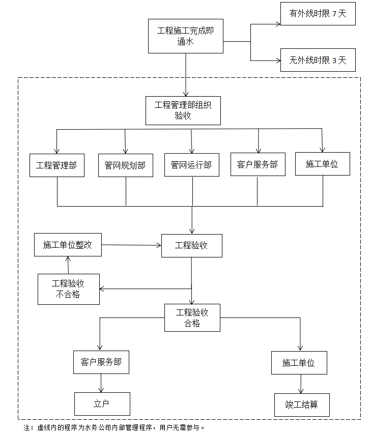 內(nèi)江市水務(wù)有限責(zé)任公司給水工程驗收流程示意圖