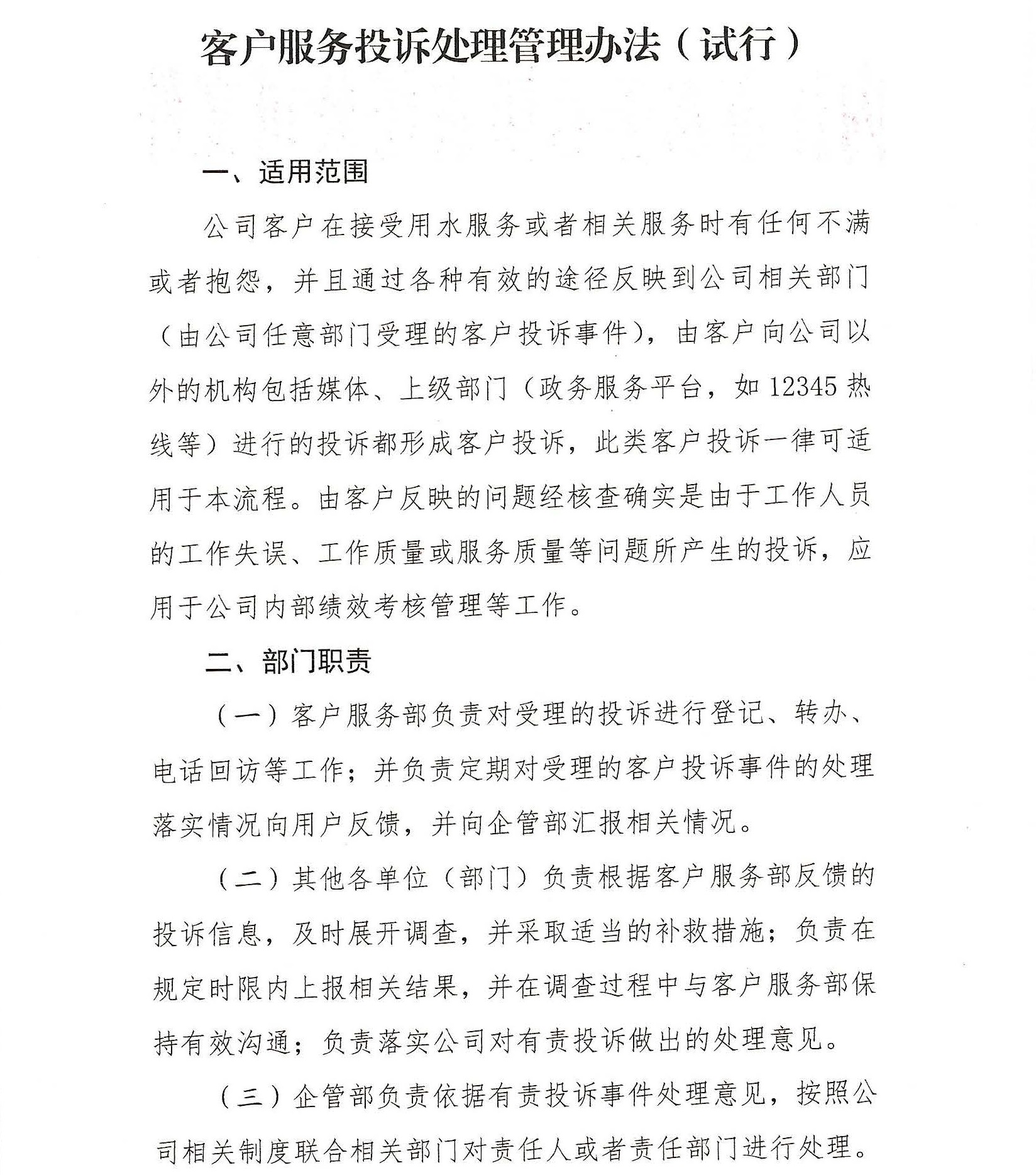 《客戶服務(wù)投訴處理管理辦法(試行)》